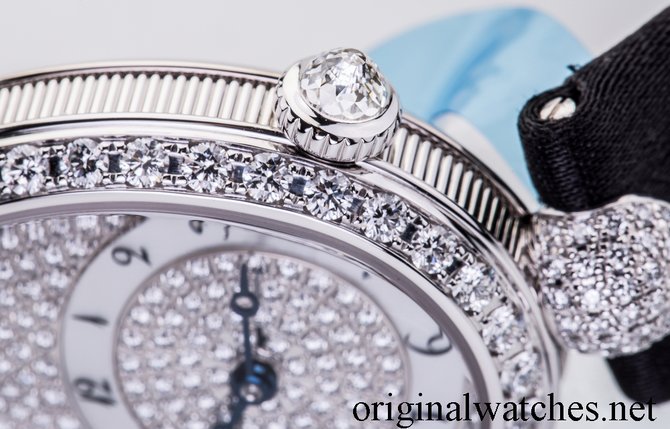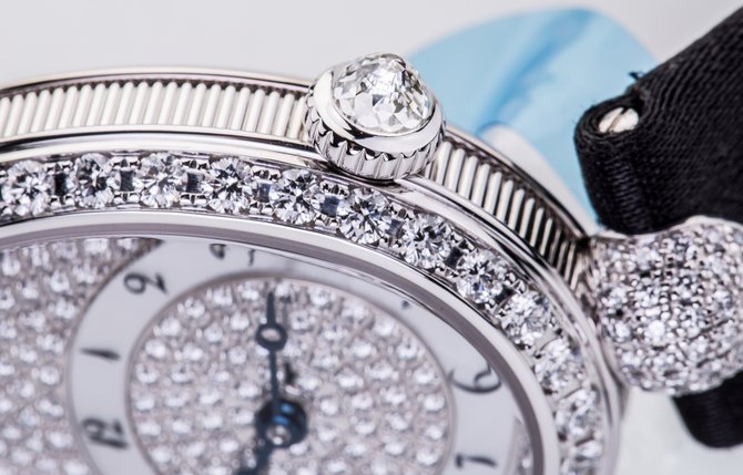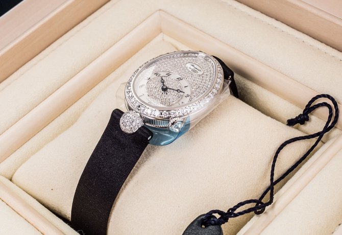 Первые часы созданные Breguet для ношения их на руке были часы Reine de Naples. Часы Breguet всегда были очень популярны у женщин,что подчёркивало их изысканный вкус и любовь к прекрасному. Самые знаменитые женщины были и есть преданными ценителями произведений от часовой мануфактуры Breguet, такие дамы из высшего общества как королева Франции Мария-Антуанетта,маркиза Кондросе и императрица Жозефина. Современные женщины предпочитающие классический изысканный стиль тоже не могут не обратить своё внимание на модель Reine de Naples. Breguet создавший модель Reine de Naples для сестры Наполеона Бонапарта-Каролины,королевы Неаполя не подозревал что в наши дни эти часы служат эталоном стиля в женских моделях часов. Золотые женские часы Бреге Reine de Naples созданы, чтобы угодить изысканному аристократическому вкусу. Корпус изготовлен только из благородных металлов – данная модель выполнена из белого золота. Безель, крепления для ремешка и корпусное кольцо украшены 139 бриллиантами (около 1,32 карата). Драгоценные камни изящно повторяют линии овального корпуса, придавая ему завершенный вид. Циферблат из посеребренного золота с отделкой 211 бриллиантами (около 0,63 карата) на нем самое важное – индикация часов и минут. Смещенная часовая шкала из натурального перламутра с арабскими цифрами Breguet. Модель Reine de Naples оснащена автоматическим мануфактурным калибром Breguet Caliber 586 с запасом хода порядка 38 часов с частотой 21600 пол/час, детали которого на 29 драгоценных камнях. В механизме используются инновационные технологии, позволяющие снизить силу трения и износ деталей: кремниевый рычаг спуска и балансовая пружина. Циферблат часов защищен прочным сапфировым стеклом. Водонепроницаемость корпуса до тридцати метров. Каждый корпус, циферблат и калибр несут на себе маркировку Бреге.
