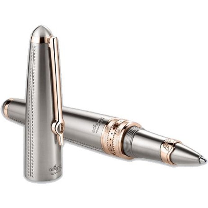 Складная ручка (Writing instruments Tradition Convertible pen Ref. WI05TR07F), выполненная в комбинации розового золота с титаном, представлена знаменитой швейцарской маркой BREGUET. Кольца изделия изготовлены из 18-каратного розового золота с гильошированной отделкой и рифлением с окаймлением. На колпачке из титана с каймой по краям вручную выгравирована надпись "Breguet". Изюминкой ручки является золотой клип, что выполнен в форме особенности марки BREGUET - ее фирменной стрелки, узнаваемой во всем мире ценителями высокого часового мастерства. В комплекте с шикарной ручкой поставляется не менее шикарный лакированный футляр, инкрустированный по дереву.