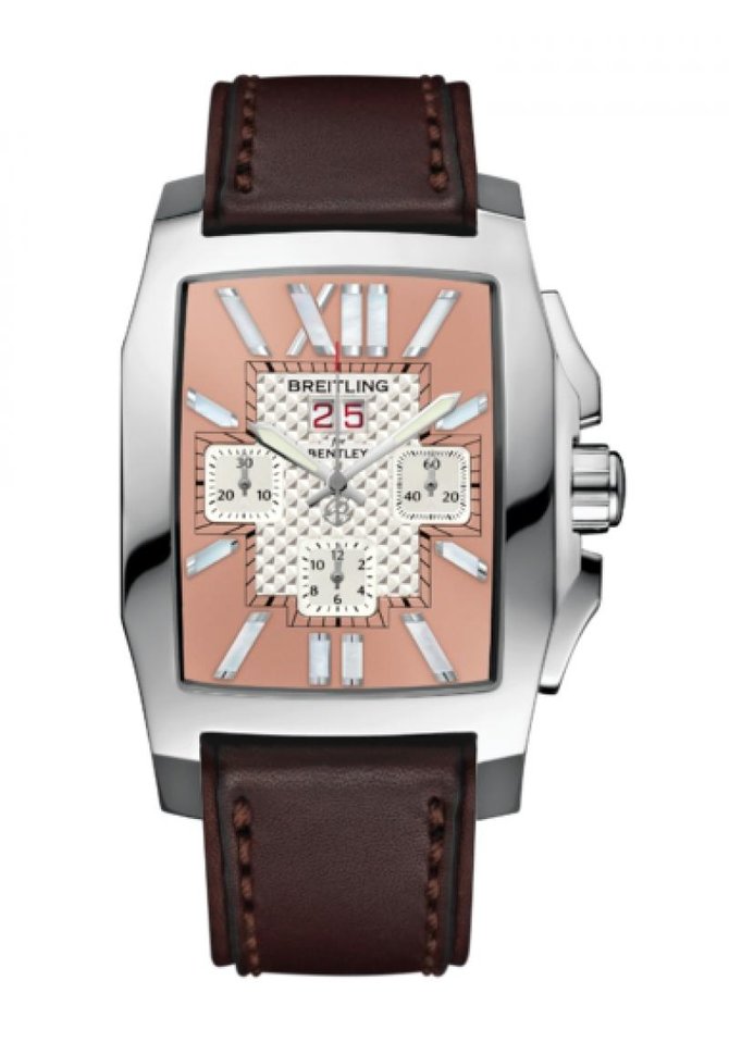 Хронограф Flying B Chronograph – это модель оригинальная, дерзкая и вдохновенная, что подчеркивается и выпуклым корпусом прямоугольной формы, и нажимными кнопками, которые плавно сливаются с его очертаниями, и скошенным стеклом, и тремя квадратными «окошками» счетчиков. В оформлении циферблата царит тот же дух утонченности, который отличает все творения Breitling for Bentley, а центр его, отделанный в технике «гильош», перекликается с фирменным узором решетки радиатора «бентли». Сверкающие часовые метки и крупная римская цифра «XII», сделанные из перламутра, это еще одно подтверждение непревзойденного искусства мастеров, создававших модель. Задняя крышка украшена знаменитой «крылатой В», что долгие годы служила талисманом престижнейшим британским авто. Облачившись в сталь или красное золото, Bentley Flying B отправляется в путь, движимый хронографическим механизмом с автоподзаводом, который официально сертифицирован COSC. А для тех, кто ценит поистине неординарные вещи, создано 100 экземпляров версии Midnight Carbon в сверхпрочном корпусе из матово-черной стали, изготовленном с применением углеродной обработки, и с циферблатом, который играет всеми оттенками черного.