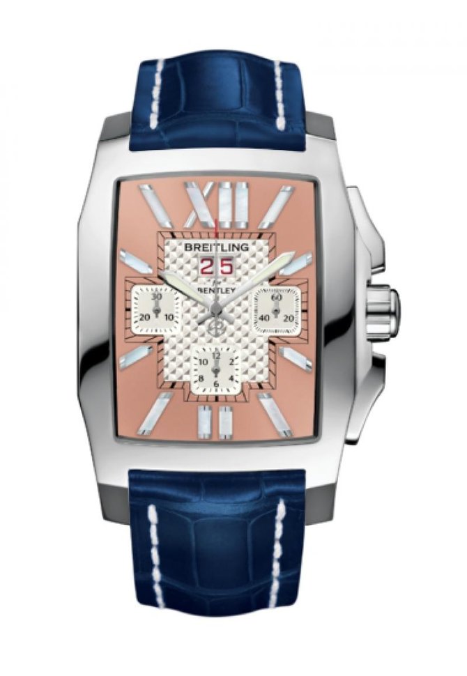 Хронограф Flying B Chronograph – это модель оригинальная, дерзкая и вдохновенная, что подчеркивается и выпуклым корпусом прямоугольной формы, и нажимными кнопками, которые плавно сливаются с его очертаниями, и скошенным стеклом, и тремя квадратными «окошками» счетчиков. В оформлении циферблата царит тот же дух утонченности, который отличает все творения Breitling for Bentley, а центр его, отделанный в технике «гильош», перекликается с фирменным узором решетки радиатора «бентли». Сверкающие часовые метки и крупная римская цифра «XII», сделанные из перламутра, это еще одно подтверждение непревзойденного искусства мастеров, создававших модель. Задняя крышка украшена знаменитой «крылатой В», что долгие годы служила талисманом престижнейшим британским авто. Облачившись в сталь или красное золото, Bentley Flying B отправляется в путь, движимый хронографическим механизмом с автоподзаводом, который официально сертифицирован COSC. А для тех, кто ценит поистине неординарные вещи, создано 100 экземпляров версии Midnight Carbon в сверхпрочном корпусе из матово-черной стали, изготовленном с применением углеродной обработки, и с циферблатом, который играет всеми оттенками черного.