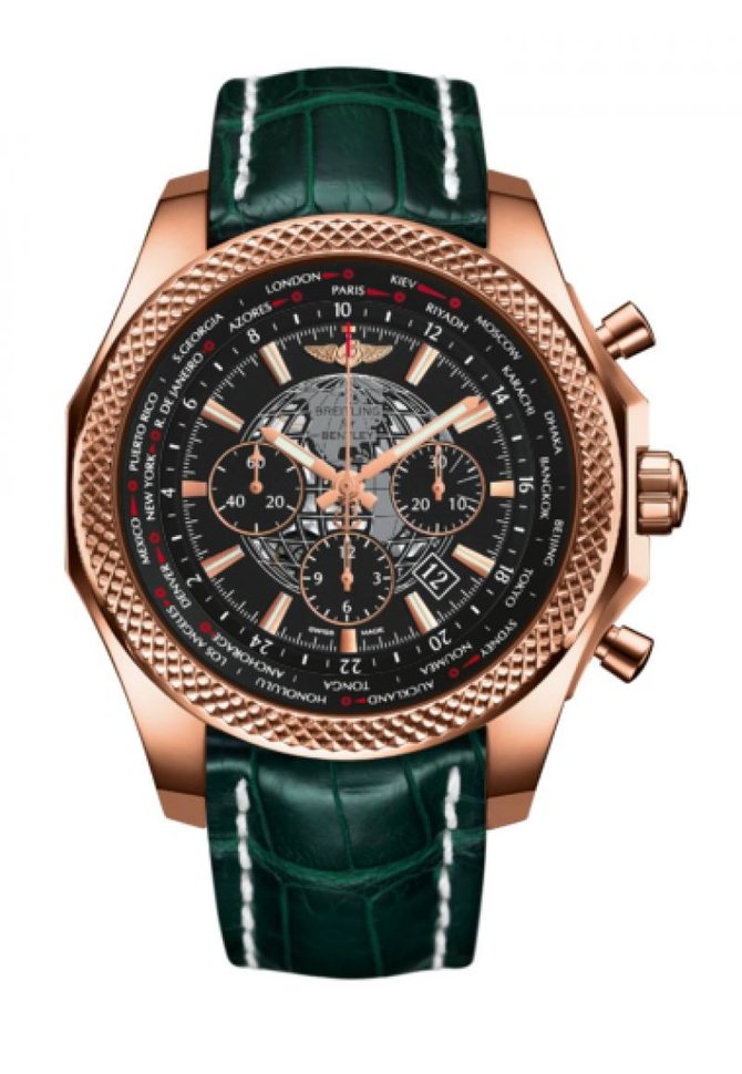 На счету мастеров фирмы Breitling очень много оригинальных технических новшеств, которые и смогли прославить этот бренд. Удобство, точность и специфические функции сделали наручные часы самыми популярными среди пилотов Первой мировой войны и сразу после нее. Тем, для кого искусство жизни есть путешествие, Breitling for Bentley дарит Bentley B05 Unitime, хронограф с мировым временем, которому дает жизнь инновационный мануфактурный механизм Breitling. Благодаря системе двойного диска, эти необычайно удобные часы позволяют с первого взгляда узнать, сколько сейчас времени в любой точке мира – в любом из 24 часовых поясов. Чтобы сменить часовой пояс, достаточно повернуть головку вперед или назад, одним движением обеспечив мгновенную коррекцию всех показаний; даже дата при этом автоматически приводится в соответствие с местным временем. Безель с названиями 24 городов позволяет учесть летнее время. Черный или матово-белый циферблат украшен изящным изображением земного шара, что подчеркивает «дорожное» настроение. Высокоэффективный хронографический механизм, сертифицированный COSC, отсчитывает время вашего путешествия по всему миру. Оригинальная форма механизма автоподзавода, который (как легко заметить благодаря прозрачной задней крышке) напоминает обод колеса, нисколько не мешает ему эффективно работать. Bentley B05 Unitime существует в двух вариантах исполнения – в стали и в красном золоте – с браслетом, каучуковым ремешком или ремешком из крокодиловой кожи.