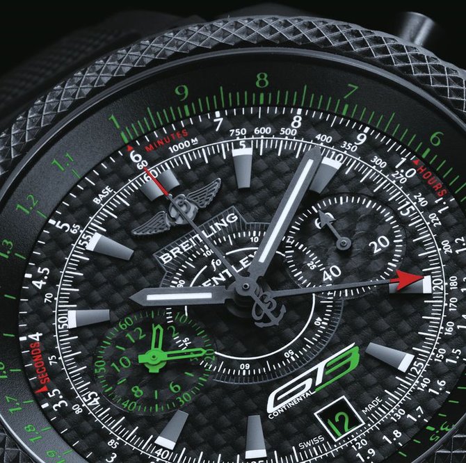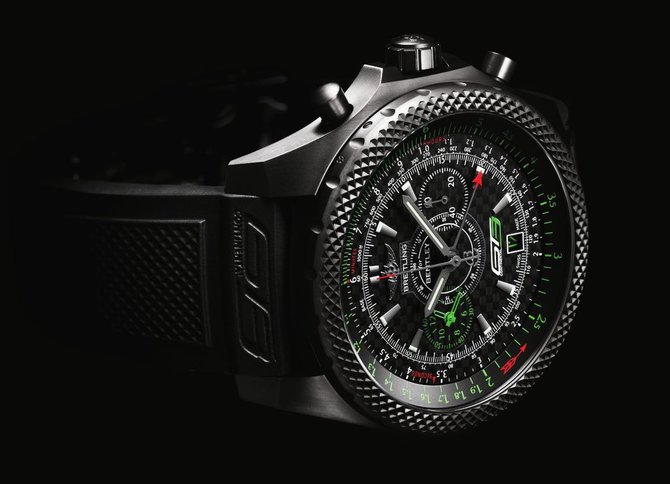 Швейцарские часы Breitlingfor Bentley GT3 выпущены ограниченным тиражом в 500 экземпляров. Мужские часы представлены в круглом титановом корпусе с PVD-покрытием. Корпус внушительного размера - 49 мм. Защитное лицевое стекло из прочного сапфира с нанесением антибликового покрытия. Установленный в часах калибр 27B с автоматическим подзаводом и хронографом. Ремешок каучуковый. Застежка раскладывающаяся. Водостойкость корпуса - 100 метров. Механизм с сертификатом хронометра COSC. Задняя крышка из сапфирового стекла.