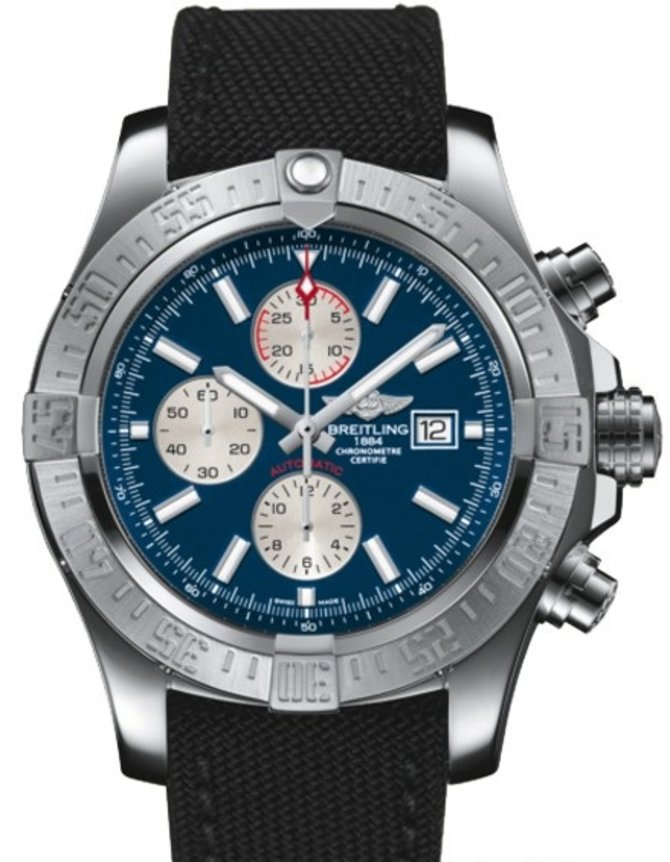 Бренд Breitling представляет модель для профессиональных дайверов Super Avenger II A1337111/C871/104W/A20BA.1, которая дополняет коллекцию Chronomat. Официально сертифицированный механизм (калибр Breitling 13) институтом COSC как хронометр имеет запас хода на 42 часа. Спортивный крупный 48-миллиметровый корпус из стали снабжен безелем с гравировкой минутной шкалы. Циферблат синего цвета закрыт сапфировым стеклом. На нем показываются: часы, минуты, секунды, дата и данные хронографа. Ремешок из нейлона черного цвета со стальной застежкой в комплекте. Водонепроницаемость корпуса позволяет погружаться с часами под воду до 300 метров глубины. Безель вращается в двух направлениях.