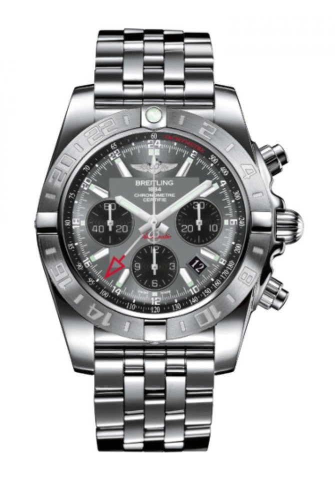 Представляя часы Chronomat 44 GMT, компания Breitling даёт путешественнику возможность с непревзойдённой лёгкостью и удобством пользоваться своим времяизмерительным прибором. Владельцу их нужно только вытянуть заводную головку и повернуть её вперёд или назад, чтобы перейти к тому или иному часовому поясу без потери точного положения минутной стрелки. Эта модель, снабжённая мануфактурным механизмом Breitling Caliber B04, является одним из немногих хронографов, где установлена такая удобная система перехода между двумя часовыми поясами. Марку также отличает вращающийся безель, предоставляющий возможность распознавания третьего часового пояса, с обозначениями 24 часов.