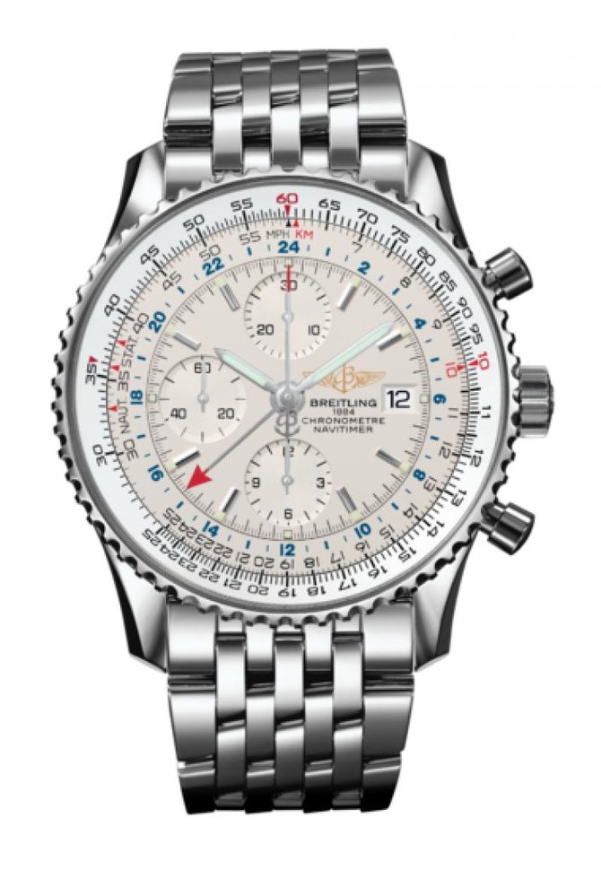 Всегда готовые к выступлению в поход, часы для путешественников Navitimer World предлагают чрезвычайно практичную и удобную в использовании систему двойного указания времени. Дополнительная центральная стрелка с красным кончиком показывает время в другом уголке земного шара в течение 24 часов – указывая, день или ночь стоит в выбранном вами месте. Механизм хронографа с автоподзаводом заключён в крупный стальной корпус, на обороте которого выгравированы названия крупнейших городов мира и в каких часовых поясах они находятся.