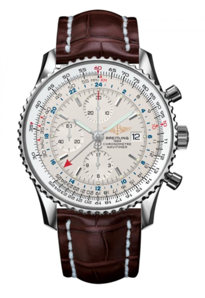 Всегда готовые к выступлению в поход, часы для путешественников Navitimer World предлагают чрезвычайно практичную и удобную в использовании систему двойного указания времени. Дополнительная центральная стрелка с красным кончиком показывает время в другом уголке земного шара в течение 24 часов – указывая, день или ночь стоит в выбранном вами месте. Механизм хронографа с автоподзаводом заключён в крупный стальной корпус, на обороте которого выгравированы названия крупнейших городов мира и в каких часовых поясах они находятся.