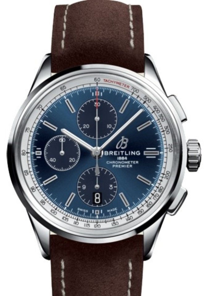 Представитель коллекции Premier часового бренда Breitling - модель в 42-миллиметровом корпусе из нержавеющей стали Chronograph 42 A13315351C1X2. Механизм механического типа с автоматическим подзаводом, калибр Breitling 13, обеспечивает часы индикацией текущего времени, даты и показаний хронографа. Стрелки покрыты люминесцентным составом. На руке часы фиксируются ремешком из мягкой бархатистой кожи теленка коричневого цвета и застежкой из стали. Водонепроницаемость корпуса дает возможность владельцу погружать часы на 100-метровую глубину. Циферблат надежно защищен стеклом из противобликового сапфирового кристалла.