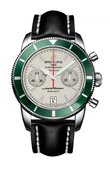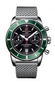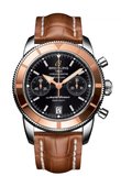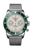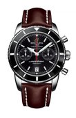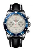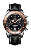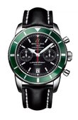Superocean Héritage Chronographe сочетает в себе необычный внешний вид с превосходными рабочими качествами. Мощный стальной корпус диаметром 46 или 44 мм, водонепроницаемый на глубине до 200 м (660 футов), скрывает в себе механизм с автоподзаводом, имеющий официальный сертификат хронометра. Приверженцы стиля, прочности и комфорта оценят широкий выбор ремешков и браслетов – стальной браслет миланского плетения даёт отсылку к первоначальному браслету этой модели, каучуковый ремешок хорошо сочетается с видом безеля. Две модели (46-мм с малыми циферблатами под цифрами 12, 9 и 6; и 44-мм с малыми циферблатами под цифрами 9 и 3) также доступны с безелем, украшенным кольцом из 18-каратного красного золота. Часы Breitling являются абсолютно уникальной швейцарской маркой, которая известна своими стильными хронографами с авиационным дизайном. На счету мастеров фирмы очень много оригинальных технических новшеств, которые и смогли прославить этот бренд. Удобство, точность и специфические функции сделали наручные часы Breitling самыми популярными среди пилотов Первой мировой войны и сразу после нее.