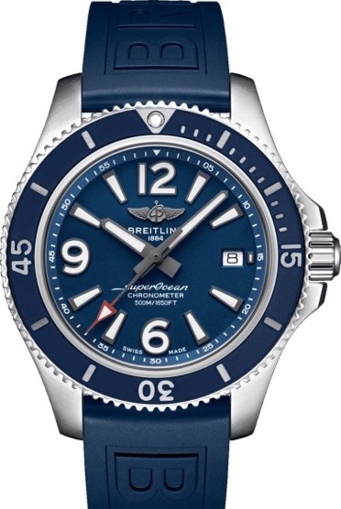 Часовая мануфактура Breitling презентовала модель Superocean Automatic 42 A17366D81C1S1 в корпусе круглой формы из стали, диаметром 42 мм. Внутри корпуса специалисты разместили механизм Breitling 17, что индицирует такие данные: часы, минуты, секунды, дата. Синий циферблат оснащен часовыми метками и стрелками, покрытыми люминесцентным составом. Индикатор даты разместили на уровне отметки "3 часа". Безель крутится в одном направлении. На запястье руки часы Superocean Automatic фиксируются каучуковым ремешком с фирменным тиснением и застежкой из стали. Водонепроницаемость корпуса рассчитана на 500 метров. Дайверские часы компания Breitling выпустила в 2019 году.
