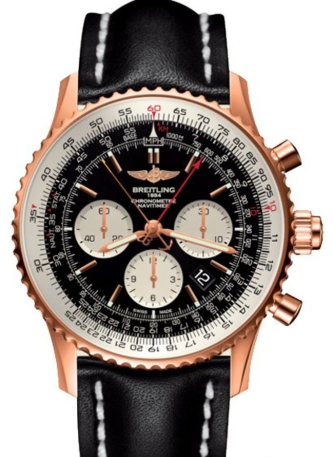 Представленная модель швейцарских часов Breitling Navitimer Navitimer 1 B03 Chronograph Rattrapante 45 RB031121/BG11/441X/R20BA.1 имеет спортивную функцию для измерения промежутков времени - хронографа. Циферблат черного цвета успешно контрастирует с золотыми метками и стрелками, на которое нанесено люминесцентное покрытие. Стекло на лицевой части корпуса, которое защищает циферблат, выполнено из натурального высокопрочного сапфирового кристалла. Ремень пошит из кожи теленка черного цвета, а для его фиксации на руке предусмотрена золотая застежка классического типа. Корпус с герметичностью до 30 метров. Браслет вращается в двух направлениях. Установленный в часах механизм Bretiling B03 имеет запас хода на 70 часов, а также отмечен сертификатом хронометра от института COSC.