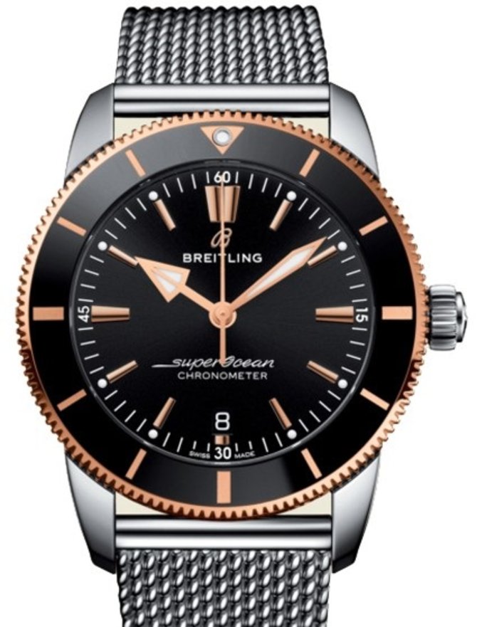 Торговая марка Breitling выпустила наручные часы Superocean Heritage II B20 Automatic 44 UB2030121B1A1. Корпус, диаметром 44 мм, изготовлен из нержавеющей стали в комбинации с розовым золотом. Черный циферблат дополнен стрелками и метками из чистого розового золота, покрытого люминесцентным составом. Внутри часов был размещен мануфактурный часовой калибр Breitling B20 с запасом хода на 70 часов. Браслет для крепления часов на руке выполнен из стали и дополнен раскладной пряжкой. Стекло из сапфира с покрытием антибликовым составом накрывает циферблат от повреждений.
