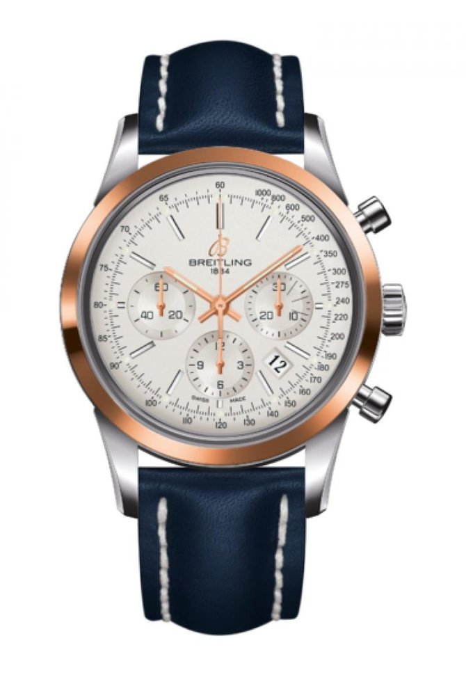 Модель Transocean Chronograph воспроизводит в чистом виде дизайн хронографов 1950-60-х годов в решительно современном стиле. Изящный, с элементами недосказанности корпус заключает в себе «высокопроизводительный мотор» в виде часового механизма Caliber 01, который полностью разработан и изготовлен в цехах компании Breitling. Циферблат является образцом четкости и читаемости, обладая такими утонченными деталями, как нанесенные часовые деления, установленные заподлицо счетчики, а также вариант заглавной буквы «В», на протяжении многих лет служившей олицетворением бренда, которая выполнена из 18-каратного золота.