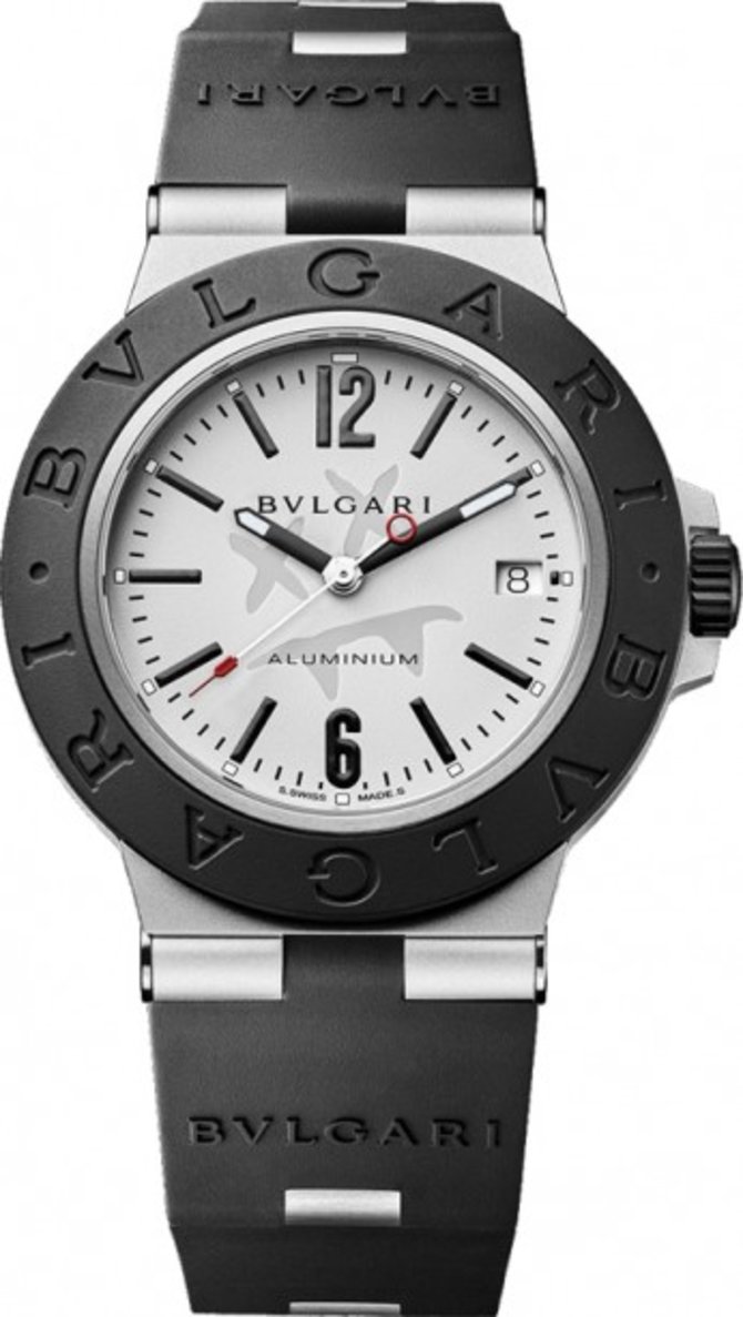 Швейцарская часовая марка Bvlgari выпустила модель мужских спортивных наручных часов Aluminium 103539 в круглом комбинированном корпусе из аллюминия и титана, диаметром 40 мм, где был размещен автоматический мануфактурный калибр Bvlgari BVL191 производства инженеров Bvlgari. Он гарантирует индикацию на сером циферблате данных текущего времени в часах, минутах и секундах, а также даты сквозь стекло из сапфирового кристалла. Запас хода рассчитан на 42 часа. На стрелки и сам циферблат нанесен люминесцентный состав. Безель украшают фирменные надписи Bvlgari. Ремень каучуковый черного цвета со стальной пряжкой. Водостойкость корпуса на уровне 100 метров.