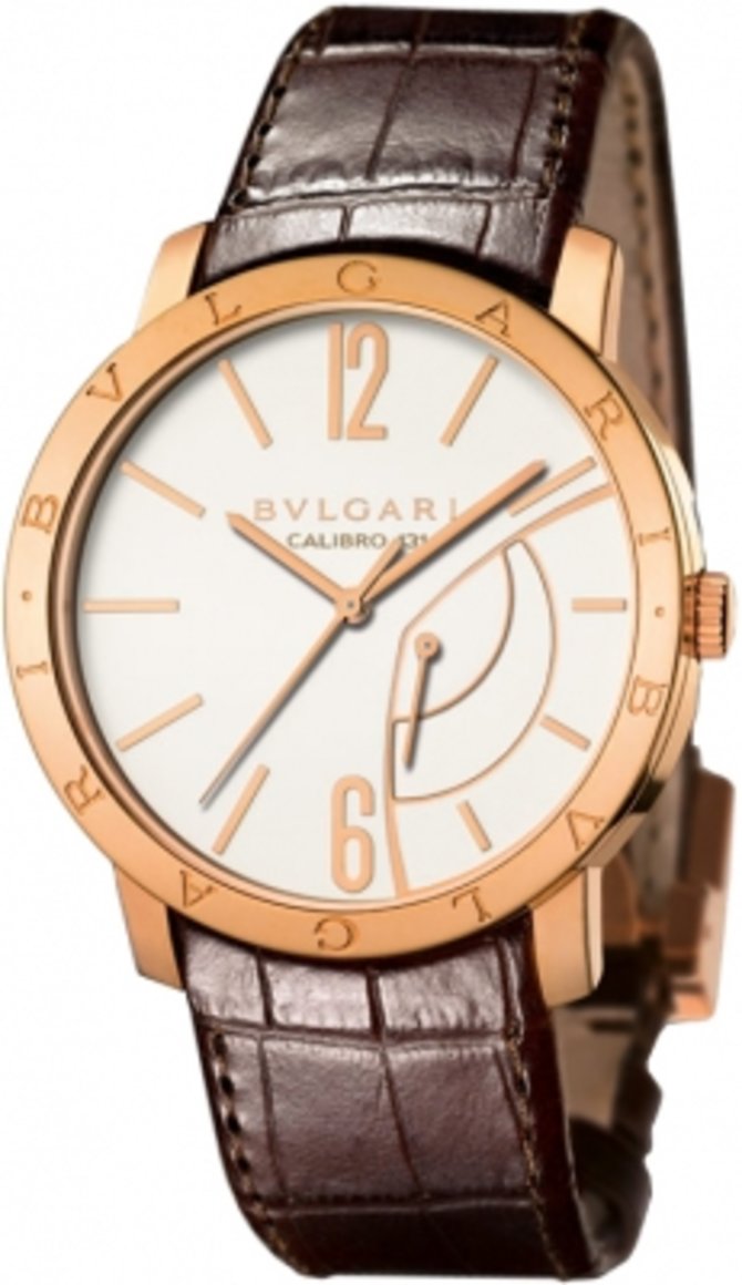 Шикарные мужские швейцарские часы, пополневшие коллекцию "Bvlgari Bvlgari", являют собой образец элегантности. Модель представлена в корпусе, диаметром 43 мм, классической круглой формы из 18-каратного розового золота. Безель гравирован. Механизм с ручным подзаводом регулируется заводной головкой, находящейся традиционно справа. Циферблат белого цвета с классическими часовыми метками указывает на часы, минуты и секунды. Индикатор в левом нижнем углу циферблата указывает оставшийся запас хода механизма, который в данной модели составляет 72 часа. Часовые метки и стрелки изготовлены из розового золота, как накладное имя бренда в центре циферблата. Ремешок из кожи аллигатора в коричневом цвете как нельзя лучше сочетается с корпусом из золота. Завершает образ классическая застежка из розового золота.