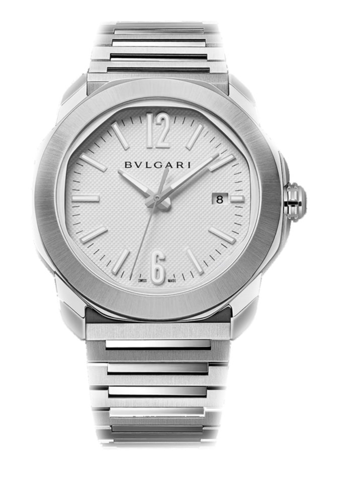 Часовая мануфактура Bvlgari представляет швейцарские часы Octo Roma 103738 в корпусе из стали, размером 41 мм, со 100-метровой водонепроницаемостью. Часы функционируют на базе механического калибраBVL 191с автоподзаводом и запасом хода на 42 часа. На циферблате отображаются часы, минуты, секунды, дата. Часы поставляются в комплекте со стальным браслетом и раскладной застежкой. Гильошированный циферблат защищен выпуклым стеклом из сапфирового кристалла с антибликовым покрытием. На часовые метки и стрелки нанесен люминесцентный состав, что позволяет считывать показания в темноте. Часы выпущены в 2023 году.