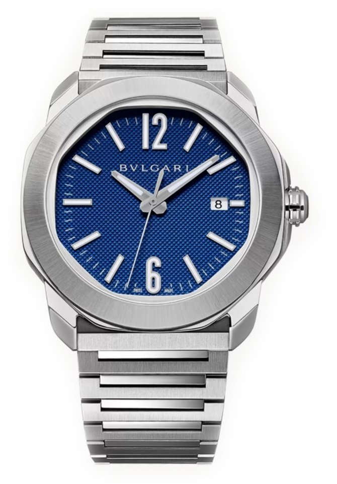 Часовая мануфактура Bvlgari представляет швейцарские часы Octo Roma 103739 в корпусе из стали, размером 41 мм, со 100-метровой водонепроницаемостью. Часы функционируют на базе механического калибраBVL 191с автоподзаводом и запасом хода на 42 часа. На циферблате отображаются часы, минуты, секунды, дата. Часы поставляются в комплекте со стальным браслетом и раскладной застежкой. Гильошированный циферблат защищен выпуклым стеклом из сапфирового кристалла с антибликовым покрытием. На часовые метки и стрелки нанесен люминесцентный состав, что позволяет считывать показания в темноте. Часы выпущены в 2023 году.