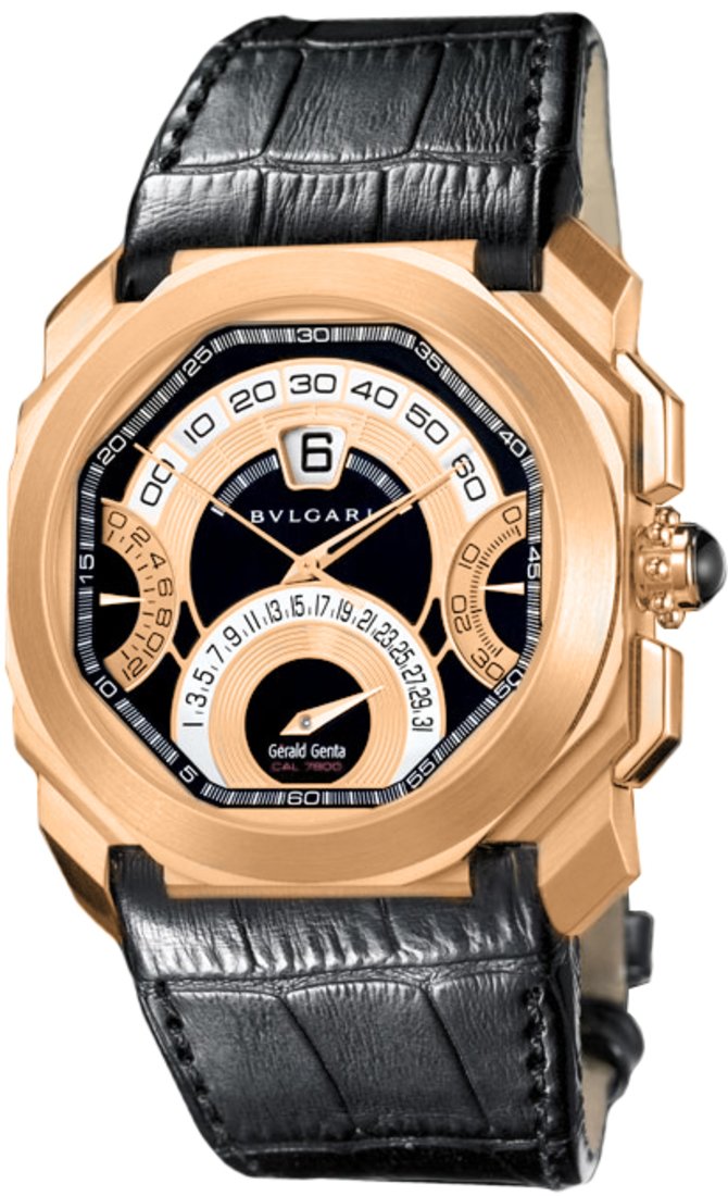 Легендарная итальянская компания Bvlgari, специализирующаяся на производстве предметов роскоши, в том числе и наручных часов люкс-класса, представляет модель механических часов на механизме с автоподзаводом и хронографом, - Bvlgari Gerald Genta Octo Quadro Retro, пополнившую знаменитую коллекцию "Gerald Genta". Часы Bvlgari выпускает швейцарский филиал бренда, расположенный в городе Нёшатель. Примечательно, что бренд Bvlgari самостоятельно разрабатывает механизмы к своим часам, т.е. они являются полностью мануфактурными. Корпус новинки, диаметром 45 миллиметров, произведен из золота. Ремешок из натуральной кожи аллигатора с классической застежкой - в комплекте. Водостойкость корпуса - 30 метров. На циферблате индицируются основные функции наручных часов - часы, минуты и дата. Часовой механизм обладает 38-часовым запасом хода. Циферблат накрыт натуральным сапфировым стеклом.