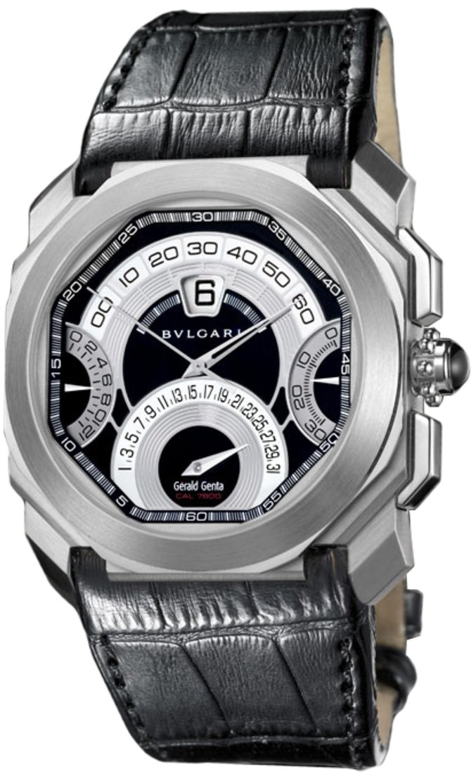 Легендарная итальянская компания Bvlgari, специализирующаяся на производстве предметов роскоши, в том числе и наручных часов люкс-класса, представляет новую модель механических часов на механизме с автоподзаводом и хронографом, - Bvlgari Gerald Genta Octo Quadro Retro, пополнившую знаменитую коллекцию "Gerald Genta". Часы Bvlgari выпускает швейцарский филиал бренда, расположенный в городе Нёшатель. Примечательно, что бренд Bvlgari самостоятельно разрабатывает механизмы к своим часам, т.е. они являются полностью мануфактурными. Корпус новинки, диаметром 45 миллиметров, произведен из белого золота. Ремешок из натуральной кожи аллигатора с классической застежкой - в комплекте. Водостойкость корпуса - 30 метров. На циферблате индицируются основные функции наручных часов - часы, минуты и дата. Часовой механизм обладает 38-часовым запасом хода. Циферблат накрыт натуральным сапфировым стеклом.