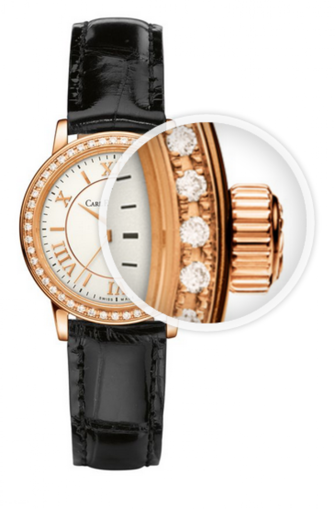 Корпус часов из розового золота представленной модели инкрустирован белыми бриллиантами классической огранки. Механизм, от которого функционируют часы, кварцевый. На циферблате с золотыми метками и стрелками индицируются часы, минуты и секунды, а также дата. Лицевая и задняя части корпуса защищены сапфировым стеклом. Водонепроницаемость часов - до 30 метров. Компанию Carl F. Bucherer отличают такие ценности, как экспертный опыт в изготовлении часов, технические инновации и преемственность. Благодаря линейке Adamavi, данный бренд швейцарских часов получил коллекцию, которая символизирует ощущение неподвластного времени дизайна и уникальный подход: стремление сохранить проверенное временем качество. Кристаллы кварца движутся за счет энергии батареи, которая, в зависимости от хода, служит от двух до трех лет. В это время на точность часов не влияет разрядка батареи. В часах с секундной стрелкой имеется индикатор разрядки: если батарея почти разрядилась, то секундная стрелка перемещается с пятисекундным интервалом. Батарею необходимо заменить в течение двух недель в авторизованном сервисном центре.