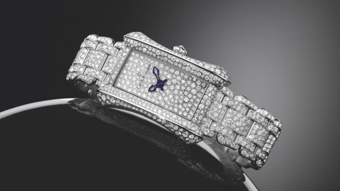 Богатая и роскошная модель женских наручных часов, вышедших ограниченной серией из 88 экземпляров, представлена в корпусе из белого золота, полностью инкрустированном белыми бриллиантами. Подробнее: корпус - 348 бриллиантов TW vvs 3,30 карата; циферблат - 137 бриллиантов TW vvs 1,2 карата; ремешок - 844 бриллианта TW vvs 8,7 карата; заводная головка - 1 бриллиант TW vvs. Кристаллы кварца движутся за счет энергии батареи, которая, в зависимости от хода, служит от двух до трех лет. В это время на точность часов не влияет разрядка батареи. Эстетичные модели Alacria отличаются своей особой пропорциональностью: навинчивающийся корпус часов Alacria очень трудно воссоздать, поскольку его поверхности имеют свободную форму, с выпуклым сферическим сапфировым стеклом, и часовщикам и ювелирам требуется особая точность в изготовлении. Боковая часть стильного корпуса часов Alacria плавно скруглена.
