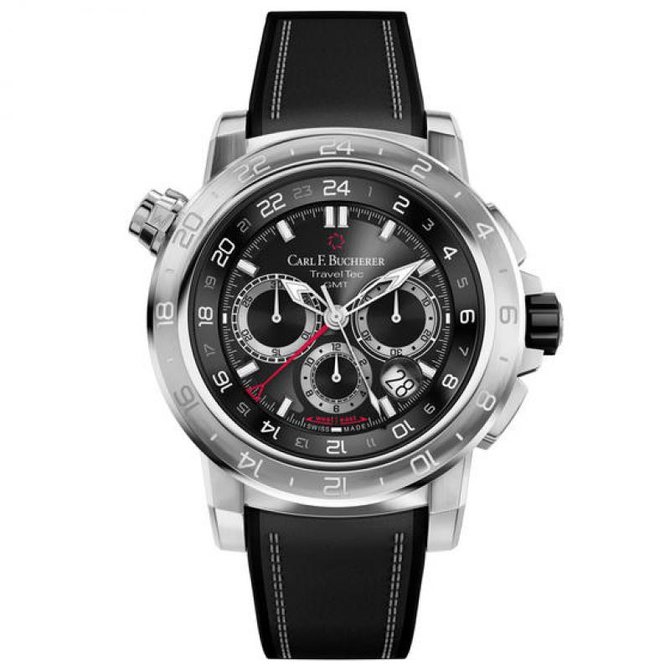 Часовая компания Carl F. Bucherer представляет результат тонкой работы своих мастеров - стильные швейцарские наручные часы TravelTec II, функционирующие от механизма с автоматическим подзаводом и функцией хронографа, Калибр CFB 1901.1, на 39 драгоценных камнях, с запасом хода - 42 часа. Часовой механизм отмечен сертификатом хронометра швейцарским институтом хронометрии. Часы, кроме классических функций типа часов, минут и секунд, отображают время трех часовых поясов, дату, а также счетчики хронографа. Корпус данной модель произведен из нержавеющей стали. Часовая заводная головка - завинчивающаяся. Циферблат защищается сапфировым стеклом с антибликовым покрытием. Водонепроницаемость стального корпуса часов составляет 100 метров. Ремешок часовой модели выполнен из каучука и наделен раскладной стальной пряжкой. Технологии Carl F. Bucherer: от разработки собственных механизмов и модулей до производства индивидуальных компонентов калибров… От производства часов и их всемирной продаже к собственным независимым бутикам.