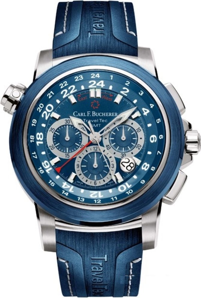 Модель Carl F.Bucherer Patravi TravelTec 00.10620.23.53.01 - это швейцарские часы для путешественников, обладающие функцией индикации времени двух часовых поясов одновременно. Также калибр CFB 1901.1, работающий от автоматического подзавода, оснащен функцией хронографа для измерения промежутков времени. В качестве подтверждения высокой точности хода механизма калибр CFB 1901.1 был отмечен сертификатом хронометра. Корпус, размером 46.6 х 15.5 мм, выполнен из нержавеющей стали. На многофункциональном циферблате синего цвета показываются часы, минуты, секунды двух часовых поясов, дата, показания хронографа. Стекло с противобликовым составом сделано из сапфирового кристалла. Запас хода установленного механизма - 42 часа. Водостойкость - до 50 метров.