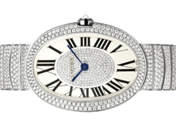 Представляем вашему вниманию, очередную модель женских наручных часов от всемирно известного французского производителя часов и ювелирных изделий Cartier. Название модели Baignoire Large WB520018 которые находятся в коллекции "Baignoire". Сразу хотелось сказать, что часы заинтересуют как и любительниц исключительно женственных дизайнов, так и любительниц надежных простых устройств. Корпус выполнен в форме овала, отполирован до блеска, сделан из восемнадцати каратного белого золота, и имеет такие размеры: 44 x 32.25 x 10.05 мм. Основные функции модели это часы, минуты. Механизм с ручным заводом оснащен калибром Cartier 430 MC. Циферблат серебристого цвета, гильошированный. Браслет часов как и весь корпус выполнен из белого золота в восемнадцать карат .На серебристом гильошированном циферблате находятся стрелки, которые отлиты вручную. И что касается водонепроницаемости, она более стандартна и составляет тридцать метров. Заводной ключ инкрустирован белым бриллиантом. Корпус закрывает прочное стекло выполненное из сапфира. Задняя крышка часов закрыта под давлением. Безель и браслет украшены белыми бриллиантами, что несомненно порадует любительниц драгоценностей.