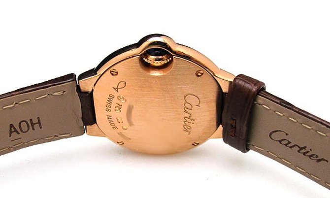 Представляем вашему вниманию, очередную модель женских наручных часов от всемирно известного французского производителя часов и ювелирных изделий Cartier. Название модели Ballon Bleu de Cartier Small Quartz W6900256 которые находятся в коллекции "Ballon Bleu de Cartier". Сразу хотелось сказать, что часы заинтересуют как и любительниц исключительно женственных дизайнов, так и любительниц надежных простых устройств. Корпус выполнен в форме круга, отполирован до блеска, сделан из розового восемнадцати-каратного золота, и имеет такие размеры: 28 мм в диаметре. Основные функции модели это часы, минуты. Кварцевый механизм часов оснащен калибром Cartier 057. Циферблат серебристого цвета. Ремешок часов коричневого цвета, выполнен из кожи аллигатора, оснащен золотой вставкой также откидной застежкой. На циферблате находятся стрелки, которые отлиты вручную из вороненной стали. И что касается водонепроницаемости, она более стандартна и составляет тридцать метров. Заводной ключ инкрустирован синим бриллиантом. Корпус закрывает прочное стекло выполненное из сапфира. Задняя крышка часов закрыта под давлением.