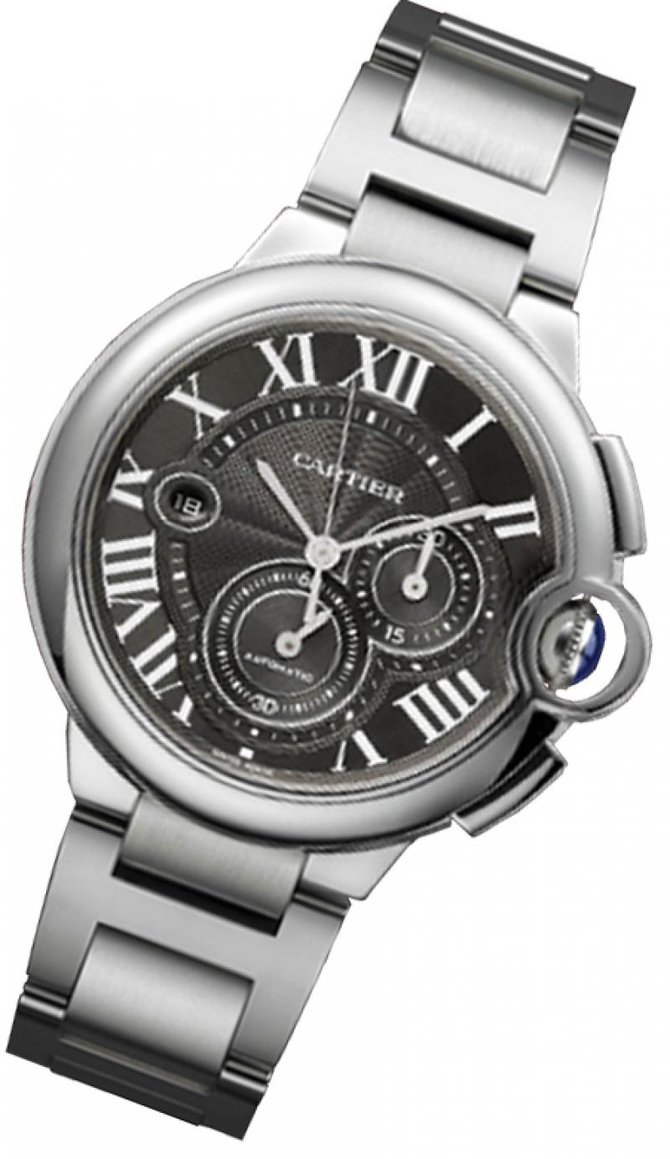 При рассмотрении очередного производителя часов Cartier, чье имя известно на весь мир благодаря благодаря высококачественными, многофункциональными, классическими изделиями, сложно не обратить внимание на модель мужских наручных часов Ballon Bleu de Cartier Chronograph W6920025. Данная модель часов понравится приверженцам классического точного дизайна. Корпус часов выполнен в круглой форме, отполирован до блеска и сделан из нержавеющей стали. Размеры корпуса составляют 46.8 x 47.1 x 14.8 мм. Автоматический механизм оснащен калибром Cartier 8101 MC. На черном циферблате, "ходят" отлитые вручную из вороненной стали стрелки. Сапфировое стекло которое довольно устойчиво к царапинам и прочим повреждениям, закрывает циферблат. Основные функции это часы, минуты, секунды, дата, но пожалуй главная особенность данной модели это наличие хронографа. Индикатор даты, находится на позиции девяти часов. Заводной ключ находится на позиции трех часов согласно стандартам, и инкрустирован синим сапфиром кабошоном. Браслет данной модели как и сам корпус выполнен из нержавеющей стали. Водонепроницаемость часов более стандартна, и составляет 100 футов, которые равняются тридцати метрам.