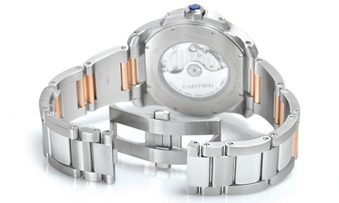Пришло время ознакомиться с очередной коллекцией мужских наручных часов Calibre de Cartier, от известного во всем мире производителя часов Cartier, который завоевал сердца миллионов своими безупречными часовыми шедеврами в которые входят как и классические модели так и многофункциональные оригинальные часы. Рассмотрим модель Automatic W7100036. Корпус выполнен в круглой форме, комбинированный и сделан из розового восемнадцати каратного золота а также нержавеющей стали. В диаметре размер корпуса составляет 42 мм. Основные функции модели это часы, минуты, секунды, дата. Индикатор который отображает дату находится на позиции трех часов. На циферблате великолепно смотрятся римские цифры. Также стоит упомянуть отлитые вручную из вороненной стали стрелки, которые ходят по серебристому циферблату. Циферблат закрывает прочное сапфировое стекло, а значит можно не переживать на счет появления царапин и прочих повреждениях. Автоматический механизм с оснащен калибром 1904-PS MC, и имеет запас хода на целых сорок восемь часов. Браслет как и сам корпус комбинированный и сделан из нержавеющей стали а также розового золота. Водостойкость модели стандартна и равняется тридцати метрам.