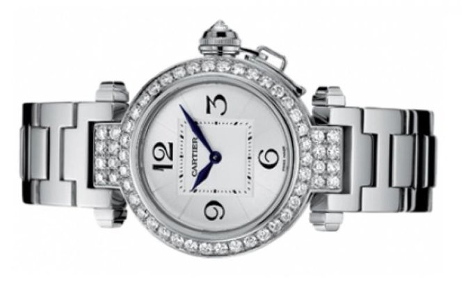 Представляем вашему вниманию, очередную модель женских наручных часов от всемирно известного французского производителя часов и ювелирных изделий Cartier. Название модели Pasha de Cartier 32 mm WJ11924G которые находятся в коллекции "Pasha de Cartier". Сразу хотелось отметить, что часы заинтересуют как и любительниц исключительно женственных дизайнов, так и любительниц надежных простых устройств. Корпус выполнен в круглой форме, отполирован до блеска, сделан из восемнадцати каратного белого золота, и имеет такие размеры: 32 x 8.8 мм. Основные функции модели это часы, минуты. Кварцевый механизм часов оснащен калибром Cartier 690. Циферблат серебристого цвета. Браслет часов как и корпус выполнен из белого золота, оснащен откидной застежкой. На циферблате находятся стрелки, которые отлиты вручную из вороненной стали. И что касается водонепроницаемости, она более стандартна и составляет тридцать метров. Корпус закрывает прочное стекло выполненное из сапфира. Задняя крышка часов закрыта под давлением. Заводной ключ инкрустирован белым кабошоном.