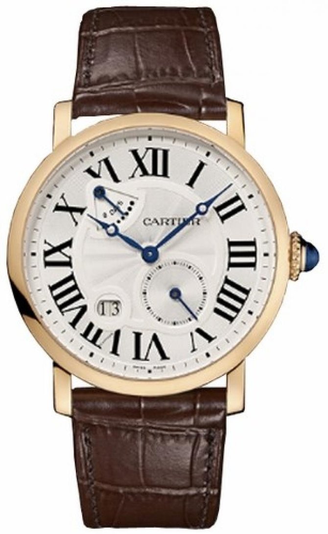 Пришло время ознакомиться со следующей моделью мужских наручных часов от всемирно известного французского производителя часов и ювелирных изделий Cartier. Название модели Power Reserve W1556203 которые находятся в коллекции Rotonde de Cartier. Сразу хотелось сказать, что часы заинтересуют как и любителей строгих дизайнов, так и любителей надежных простых, функциональных устройств. Круглый корпус, отполирован до блеска, сделан из розового восемнадцати каратного золота, и имеет такие размеры: 42 х 11.7 мм. Основные функции модели это часы, минуты, секунды, дата, запас хода. И сразу обращаем внимание на главные особенности этой модели это увеличенный запас хода, который составляет восемь дней!. Автоматический механизм оснащен калибром Cartier 9910 МС. Циферблат серебристого цвета, гильошированный. Ремешок коричневого цвета выполнен из кожи аллигатора, оснащен вставкой из золота. И что касается водонепроницаемости, она более стандартна и составляет тридцать метров. Заводной ключ инкрустирован синим бриллиантом. Корпус закрывает прочное стекло выполненное из сапфира. Благодаря задней прозрачной крышке, можно наблюдать за работой механизма.
