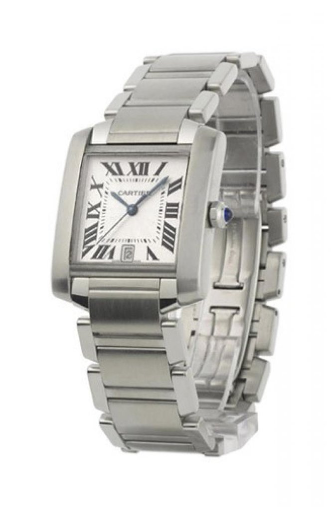 Пришло время ознакомиться со следующей моделью мужских наручных часов от всемирно известного французского производителя часов и ювелирных изделий Cartier. Название модели Tank Francaise Large W51002Q3 которые находятся в коллекции "Tank". Сразу хотелось сказать, что часы заинтересуют как и любителей строгих дизайнов, так и любителей надежных простых устройств. Корпус вытянутой прямоугольной формы, отполирован до блеска, сделан из нержавеющей стали, и имеет такие размеры: 36.5 х 28.15 х 7.45 мм. Основные функции модели это часы, минуты, секунды, дата. Индикатор отображающий дату находится на шкале у позиции шести часов. Автоматический механизм оснащен калибром Cartier 120. Циферблат серебристого цвета. Браслет часов выполнен как и весь корпус из нержавеющей стали, оснащен раскладывающейся застежкой. На циферблате находятся стрелки, которые отлиты вручную. И что касается водонепроницаемости, она более стандартна и составляет тридцать метров. Заводной ключ инкрустирован синим бриллиантом. Корпус закрывает прочное стекло выполненное из сапфира. Задняя крышка часов закрыта под давлением.