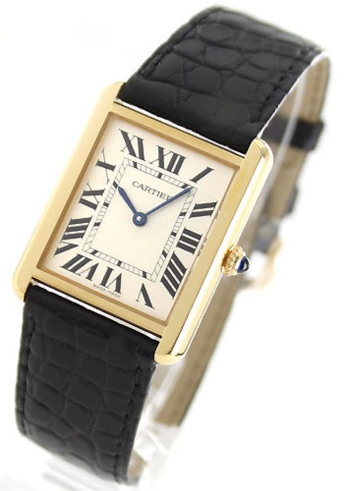 Пришло время ознакомиться со следующей моделью мужских наручных часов от всемирно известного французского производителя часов и ювелирных изделий Cartier. Название модели Tank Solo Large W5200004 которые находятся в коллекции "Tank". Сразу хотелось сказать, что часы заинтересуют как и любителей строгих дизайнов, так и любителей надежных простых устройств. Корпус вытянутой прямоугольной формы, отполирован до блеска, сделан из желтого восемнадцати каратного золота, и имеет такие размеры: 34.8 х 27.4 х 5.55 мм. Основные функции модели это часы, минуты. Кварцевый механизм оснащен калибром Cartier 690. Циферблат серебристого цвета. Ремешок модели сделан из кожи аллигатора, черного цвета, оснащен откидной застежкой и вставкой из желтого золота. На циферблате находятся стрелки, которые отлиты вручную. И что касается водонепроницаемости, она более стандартна и составляет тридцать метров. Заводной ключ инкрустирован синим бриллиантом. Корпус закрывает прочное стекло выполненное из сапфира. Задняя крышка часов закрыта под давлением.