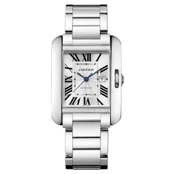 Пришло время ознакомиться со следующей моделью мужских наручных часов от всемирно известного французского производителя часов и ювелирных изделий Cartier. Название модели Tank Anglaise Medium W5310024 которые находятся в коллекции "Tank". Сразу хотелось сказать, что часы заинтересуют как и любителей строгих дизайнов, так и любителей надежных простых устройств. Корпус вытянутой прямоугольной формы, отполирован до блеска, сделан из белого восемнадцати каратного золота, и имеет такие размеры: 39.2 х 29.8 х 9.5 мм. Основные функции модели это часы, минуты, секунды, дата. Индикатор отображающий дату находится на шкале у позиции трех часов. Автоматический механизм оснащен калибром Cartier 077. Циферблат серебристого цвета. Браслет часов как и корпус выполнен из белого золота. На циферблате находятся стрелки, которые отлиты вручную. И что касается водонепроницаемости, она более стандартна и составляет тридцать метров. Заводной ключ инкрустирован синим бриллиантом. Корпус закрывает прочное стекло выполненное из сапфира. Задняя крышка часов закрыта под давлением.