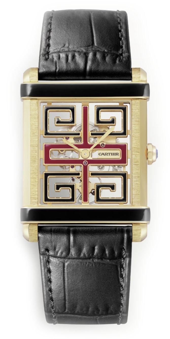 Швейцарская часовая компания Cartier представляет наручные часы Tank Chinoise WHTA0016 в прямоугольном корпусе из желтого золота, диаметром 39,5 мм х 29,16 мм. Циферблат служит для индикации часов и минут. Защита циферблата обеспечена сапфировым стеклом с антибликовым покрытием. Мануфактурный механический калибр с ручным подзаводом 9627 MC обладает запасом хода на 36 часов автономной работы. Ремень оснащен застежкой из желтого золота. Водонепроницаемость корпуса рассчитана на 30 метров. Прозрачная задняя крышка из сапфирового стекла. Лимитированный тираж - 100 экземпляров.