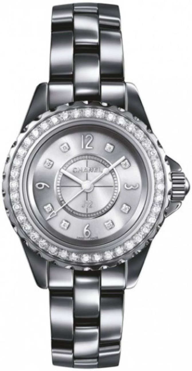 Известная на весь мир швейцарская компания Chanel, которая специализируется на изготовлении великолепных часов, а также ювелирных изделий, представляет Вашему вниманию очередную модель женских наручных часов Chanel J12 J12 Chromatic Diamond Bezel 29 mm H3402. Данная модель будет интересна любительницам необычных дизайнов, подчеркивающие классический стиль а также функциональных устройств. Корпус круглой формы отполирован до блеска, выполнен из керамики а также титана, его размер составляет 29 мм в диаметре. Основные функции часов это часы, минуты, секунды. Механизм часов - кварцевый. Циферблат часов серебристого цвета, гильошированный, украшен белыми бриллиантами. Браслет часов серого цвета, выполнен из керамики и титана, оснащен откидной застежкой. Стрелки которые находятся на циферблате, отлиты вручную из вороненной стали. Прочное сапфировое стекло закрывает корпус, а задняя крышка находится под давлением. Водонепроницаемость модели составляет 50 метров. Заводной ключ находится на позиции трех часов. Безель украшен белыми бриллиантами, что несомненно оценят любительницы драгоценностей.