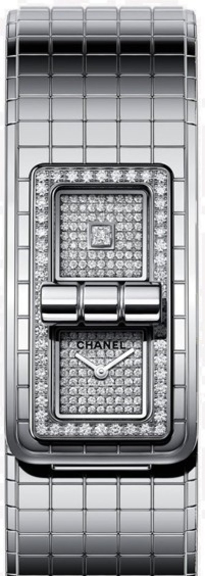 Новинка от Chanel - ювелирная модель Jewellery Collection Code Coco H5812. Корпус: нержавеющая сталь, 38.1 x 21.5 x 7.8 мм размер, 30-метровая герметичность. Бриллиантовый циферблат защищает стекло из сапфирового кристалла с противобликовым эффектом. Механизм: кварцевого типа производства Chanel. На циферблате указывается часы и минуты. Часы комплектуются браслетом из керамики с раскладной пряжкой в комплекте. Год выхода модели: 2019.