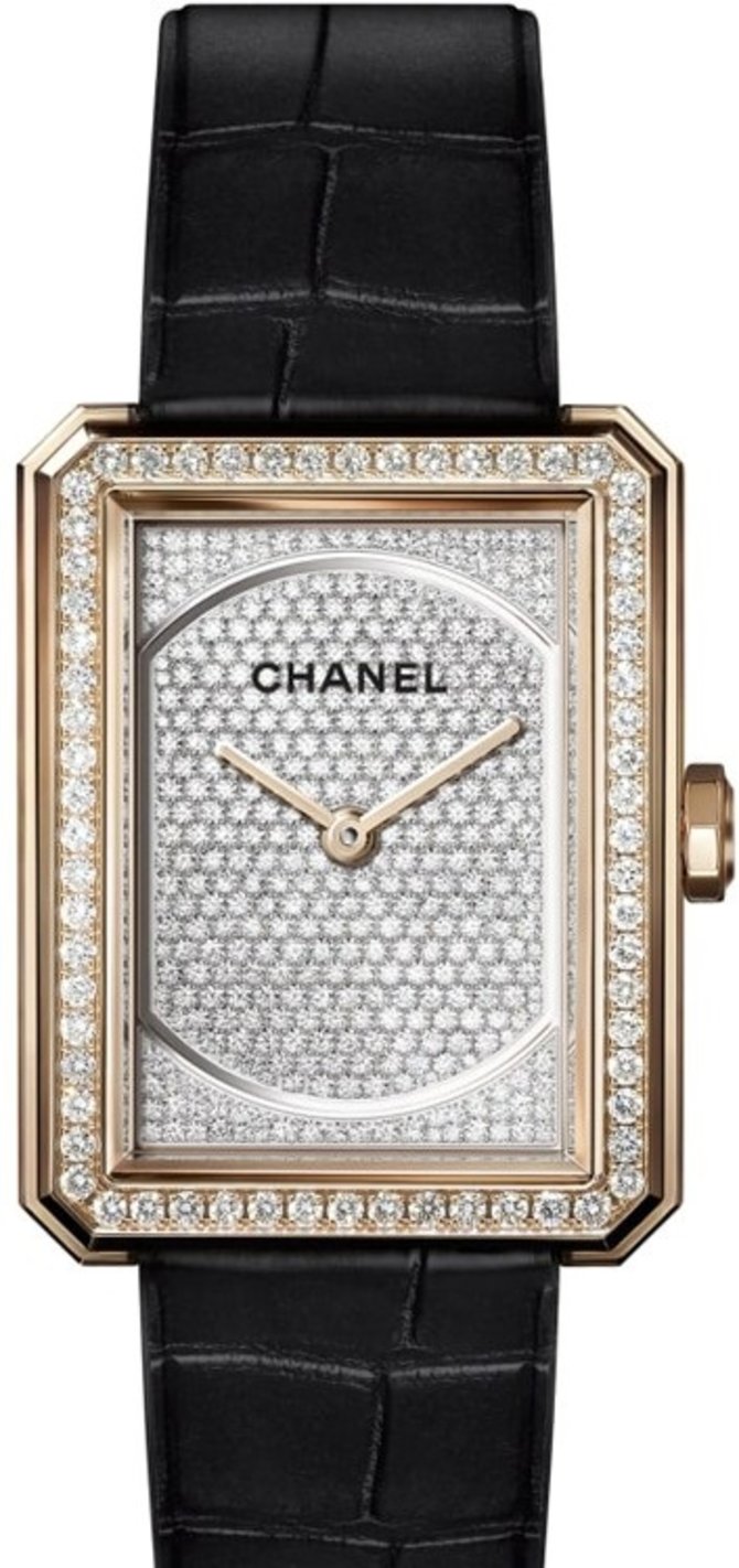 Часовая мануфактура Chanel презентовала модель Boy Friend Medium H6593. На бриллиантовом циферблате золотыми стрелками показываются часы и минуты. Стрелки сделаны из розового золота. Корпус прямоугольной формы выполнен из розового золота в размере 26.7 x 34.6 x 7.3 мм. Безель украшают множество бриллиантов. Герметичность - 30 метров. Лицевая часть корпуса защищена сапфировым стеклом с антибликовым покрытием. Модель работает от мануфактурного механизма кварцевого типа. В комплекте поставляется ремень из кожи аллигатора и классическая вставка из розового золота.