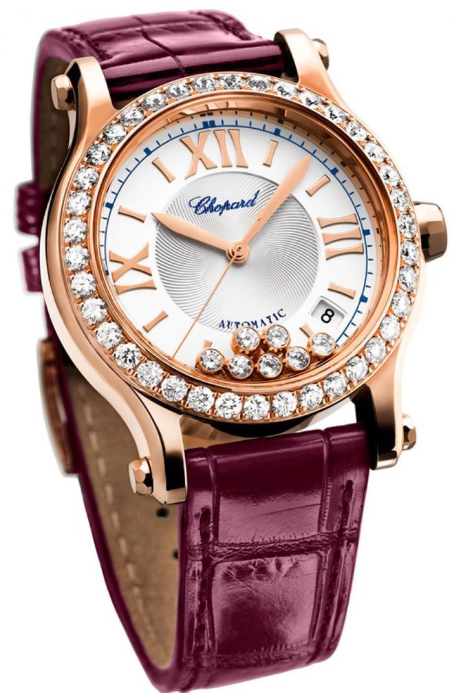 Секрет успеха открыл дизайнер Рональд Куровски, который внедрил технологию «плавающих бриллиантов» в новой модели. Инновация заключается в том, что драгоценные камни, бриллианты, заключены между двумя плоскими стеклами циферблата. Они могут свободно двигаться, создавая особое ощущение воздушности. Компания Chopard ранее специфицировалась на выпуске строгих классических мужских часов, но руководство в лице милой дамы Каролины-Груози Шойфеле привнесло свои коррективы. Линия женских часов Happy Sport прочно заняла свои позиции в списке самых любимых и востребованных аксессуаров. Спортивные наручные часы Шопард – это модель с большим циферблатом, в которой соединились инновационные технологии и модные тенденции. Корпус часов коллекции Happy Sport производится из высоколегированной нержавеющей стали, розового и белого 18-каратного золота с дополнительными керамическими деталями. Большое разнообразие браслетов и ремешков: кожа аллигатора разных цветов и оттенков, каучук, нержавеющая сталь, розовое и белое золото, биколор в гармоничном плетении.