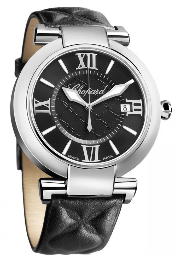 Часы Imperiale Automatic 40 mm - классическая модель с автоматическим механизмом, запас хода 60 часов, функции: часы, минуты, секунды и дата. Время отображается на белом гильошированном циферблате с помощью трех центральных стрелок, дата расположена на уровне 3-х часов. Корпус часов изготовлен из нержавеющей стали, его размер 40 х 10.28 мм. Водонепроницаемость корпуса до 50 метров. Часы комплектуются черным кожаным ремешком с застежкой из нержавеющей стали.
