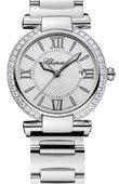 Безель модели из белых бриллиантов.Chopard - респектабельность без прозы. В тесной семье швейцарских часовых асов фирме Chopard удалось занять весьма респектабельные позиции. Не гоняясь за лидерством и громкой славой, Chopard устроил свое персональное «поле для гольфа» и стал специализироваться на выпуске красивых часов для мужчин.Фирма Chopard была основана в 1860 году в деревушке Жура неподалеку от Женевы. Уже первая модель определила лицо будущей фирмы: точность хода, скупой мужской дизайн и немыслимые красоты на гравированном позолоченном механизме за задней крышкой.Если бы мы взялись утверждать, что главное достоинство часов Chopard – изысканный стиль и безупречный вкус, часовщикам это было бы обидно. Но тем не менее это так. Точность, сложность, оригинальность узлов – у механизмов Chopard все это есть. Но у других бывает и лучше. Престижная марка, но кто из серьезных швейцарцев не престижен? Зато во всем, что касается красоты, Chopard великолепен. Особенно если учесть, что эта красота придумана специально для мужчин. Мужчины, как известно, консервативны. Отсюда ставка на традиционный дизайн.