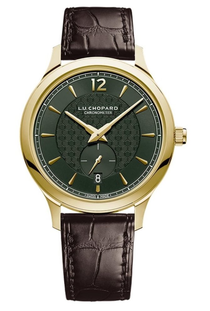 Компания Chopard представила новые часы - LUC XPS 1860 Officer ref: 161242-0001. Исключительно изысканный циферблат с ручным гилешированием и открывающаяся такая же гильошированная задняя крышка офицерского типа скрывают ультратонкий механизм LUC 96.01-L, толщиной 3,30 мм. Модель LUC XPS 1860 Officer оснащена мануфактурным калибром Chopard, представленным в 1997 году. Эти часы ограниченной серии из 50 экземпляров с корпусом, диаметром 40 мм, из 18-каратного желтого золота и обрамлением зеленого циферблата сертифицированы хронометром и отмечены знаком качества Poinçon de Genève. Водонепроницаемость корпуса - 30 метров.