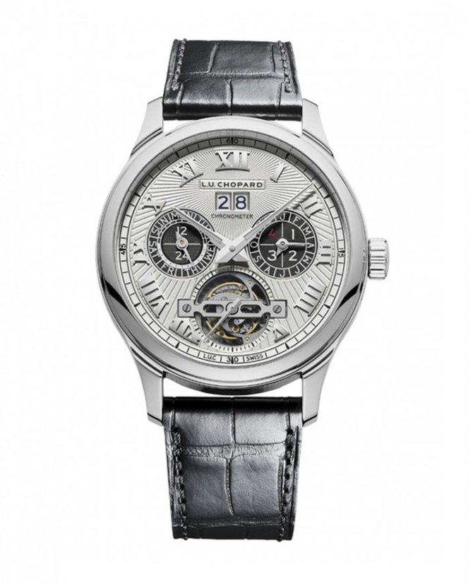 Швейцарская компания Chopard представила одну из самых сложных моделей за всю свою историю - L.U.C Perpetual T с турбийоном, вечным календарем и запасом хода механизма в 216 часов (9 дней). Круглый корпус часов выполнен из платины. Диаметр корпуса - 43 миллиметра, толщина - 14.9 мм, герметичность - 30 метров. Корпус защищен сапфировым стеклом с обеих сторон. С лицевой стороны стекло покрыто антибликовым покрытием. Сквозь заднюю крышку можно следить за функционированием механизма. Циферблат гильоширован вручную мастерами бренда. При изготовлении циферблата применялся люминесцентный состав, благодаря которому следить за временем можно и в темное время суток. Сердце часов - швейцарский мануфактурный механизм с ручным заводом LUC 02.15-L, на 31 камне, с балансовой частотой 28800 полуколебаний в час (4 гц), четырьмя заводными барабанами и девятидневным запасом хода. Индикация на циферблате: часы, минуты, секунды, дата, день/ночь, день недели, месяц, високосный год и уровень оставшегося запаса хода. Модель отмечена "Женевским клеймом". Ограниченная серия - 25 экземпляров.