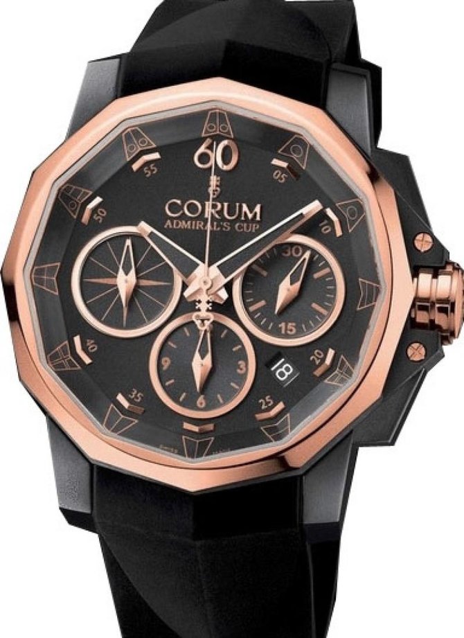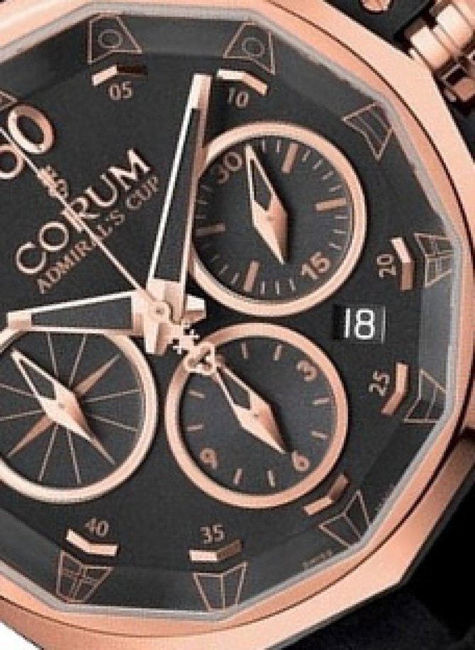 Продолжаем знакомиться с изделиями от всемирно известного швейцарского производителя часов Corum, основанного в 1955 году. Рассмотрим коллекцию, которая называется Admiral`s Cup Seafender. 753.691.93/F371 AN32 это лимитированная серия часов, которые были выпущены в количестве 188 штук. Двенадцатигранный корпус часов с изготовлен из нержавеющей стали с PVD-покрытием, безель изготовлен из розового 18-каратного золота. Размеры корпуса составляют 44 мм. Модель оснащена функциями индикации часов, минут, секунд и отображением даты на позиции между 4 и 5 часами. Данная модель оснащена хронографом. На черном циферблате нанесены золотистые маркеры часов и минут изображенных с помощью морских вымпелов. Прочное сапфировое стекло с антибликовым покрытием, защищает часы от повреждений и царапин. На торце заводного ключа выгравирована эмблема бренда Corum – ключ. Ремешок часов выполнен из каучука со вставкой из нержавеющей стали. Механизм завода - автоматический, оснащён калибром СО 753, запас хода составляет 48 часов. Что касается водонепроницаемости, то она увеличена по сравнению со стандартами, и составляет сто метров.