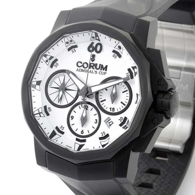 Продолжаем знакомиться с изделиями от всемирно известного швейцарского производителя часов Corum, основанного в 1955 году. Рассмотрим коллекцию, которая называется Admiral`s Cup Challenger. Модель 753.691.98/F371 AA12 это часы, которые подтверждают статус производителя. Двенадцатигранный корпус часов из нержавеющей стали с PVD-покрытием и нанесённым каучуком. Размеры корпуса составляют 44 мм. Основные функции данной модели это часы, минуты, секунды и отображение даты. Данная модель оснащена хронографом. На белом циферблате, с черными маркерами, находятся отлитые из вороненной стали стрелки, которые закрыты под прочным сапфировым стеклом с антибликовым покрытием, благодаря которому не стоит беспокоиться о повреждениях и царапинах. Заводной ключ находится по стандарту на позиции трех часов, на торце заводного ключа выгравирована эмблема бренда Corum – ключ. Ремешок часов выполнен из каучука со вставкой из нержавеющей стали. Механизм завода - автоматический, оснащён калибром СО 753, запас хода составляет 48 часов. Что касается водонепроницаемости, то она увеличена по сравнению со стандартами, и составляет сто метров.