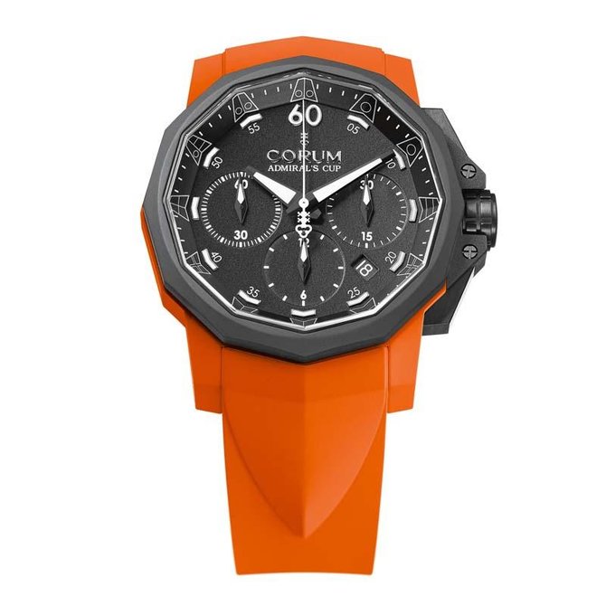 Продолжаем знакомиться с изделиями от всемирно известного швейцарского производителя часов Corum, основанного в 1955 году. Рассмотрим коллекцию, которая называется Admiral`s Cup Challenger. Модель 753.814.02/F374 AN21 это часы, которые подтверждают статус производителя. Двенадцатигранный комбинированный корпус часов из титана с нанесением каучука. Размеры корпуса составляют 44 мм. Основные функции данной модели это часы, минуты, секунды, отображение даты. Данная модель оснащена хронографом и имеет сертификат швейцарской Службы официального контроля за хронометрами (COSC). Черный циферблат с белыми маркерами закрыт под прочным сапфировым стеклом с антибликовым покрытием, благодаря которому не стоит беспокоиться о повреждениях и царапинах. Заводной ключ находится по стандарту на позиции трех часов. Ремешок часов выполнен из каучука с титановой вставкой. Механизм завода - автоматический, оснащён калибром СО 753, запас хода составляет 48 часов. Что касается водонепроницаемости, то она увеличена по сравнению со стандартами, и составляет сто метров. Данная серия была выпущена ограниченным тиражом в количестве 120 шт.
