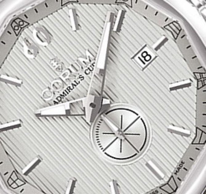 Продолжаем знакомиться с изделиями от всемирно известного швейцарского производителя часов Corum, основанного в 1955 году. Рассмотрим коллекцию, которая называется Admiral`s Cup Legend. 395.101.20/0F61 FH10 это часы, которые подтверждают статус производителя. Двенадцатигранный корпус часов изготовлен из нержавеющей стали. Размеры корпуса составляют 42 мм. Модель оснащена функциями индикации часов, минут, секунд и экраном отображения даты, расположенном на позиции 3 часов. На серебристом гильошированном циферблате нанесены маркеры минут и часов, на фланце, легко узнаваемые бренд, изображения морских вымпелов. Также имеется дополнительный секундный циферблат, расположенный на позиции 6 часов. Прочное сапфировое стеклом с антибликовым покрытием, защищает часы от повреждений и царапин. Задняя крышка прозрачна и можно рассмотреть часовой механизм. На торце заводного ключа, выгравирована эмблема бренда Corum – ключ. Ремешок часов кожаный, с застёжкой из нержавеющей стали. Механизм завода - автоматический, оснащён калибром СО 395, запас хода составляет 42 часа. Что касается водонепроницаемости, то она увеличена по сравнению со стандартами, и составляет пятьдесят метров