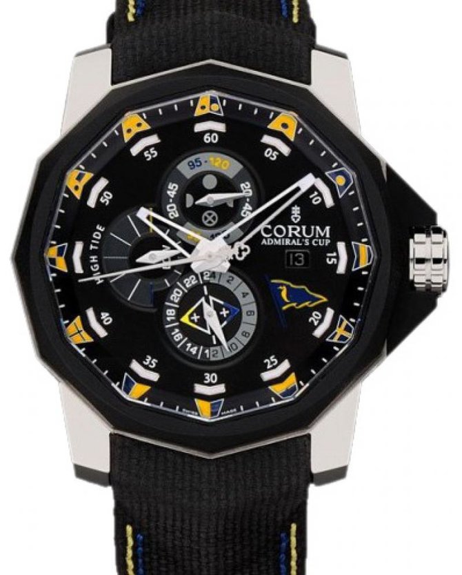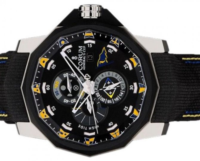 Продолжаем знакомиться с изделиями от всемирно известного швейцарского производителя часов Corum, основанного в 1955 году. Рассмотрим коллекцию, которая называется Admiral’s Cup Seafender Tides Clube de Santos. 277.931.06/0 231 AN92 это модель из лимитированной серии, посвящённой 65-летию бразильского яхт-клуба Iate Clube de Santos, и были выпущены в количестве 65 штук. Это не просто часы, а навигационный инструмент, с помощью которого можно узнать силу течения, оценить уровень воды, определить время прилива. Механизм часов сертифицирован Гидрографической и Океанографической службой Французского флота. Двенадцатигранный корпус часов изготовлен из титана. Размеры корпуса составляют 48 мм. Модель оснащена функциями индикации часов, минут, секунд и даты, расположенной на позиции 3 часов. Также в данной модели присутствует хронограф. На черном циферблате нанесены серебристые маркеры минут, маркеры часов отображены с помощью морских вымпелов. Прочное сапфировое стеклом с антибликовым покрытием, защищает часы от повреждений и царапин. На торце заводного ключа выгравирована эмблема бренда Corum – ключ. Ремешок часов изготовлен из кожи, с текстильной накладкой и прочной застёжкой из титана. Механизм завода - автоматический, оснащён калибром СО 277, запас хода составляет 42 часа. Что касается водонепроницаемости, то она увеличена по сравнению со стандартами, и составляет триста метров.