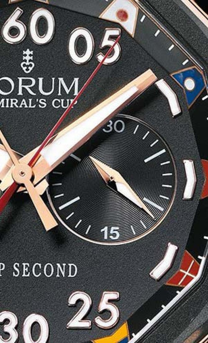Продолжаем знакомиться с изделиями от всемирно известного швейцарского производителя часов Corum, основанного в 1955 году. Рассмотрим коллекцию, которая называется Admiral`s Cup Seafender. 895.931.91/0001 AN32 это часы которые подтверждают статус производителя. Двенадцатигранный корпус часов изготовлен из розового золота. Безель покрыт чёрной вулканизированной резиной. Размеры корпуса составляют 48 мм. Модель оснащена функциями индикации часов, минут и секунд. Данная модель оснащена хронографом. На черном циферблате нанесены белые маркеры минут, маркеры часов изображены с помощью цветных морских вымпелов. Прочное сапфировое стеклом с антибликовым покрытием, защищает часы от повреждений и царапин. На торце заводного ключа выгравирована эмблема бренда Corum – ключ. Ремешок часов изготовлен из кожи аллигатора со вставкой из розового золота. Механизм завода - автоматический, оснащён калибром СО 895, запас хода составляет 42 часа. Что касается водонепроницаемости, то она увеличена по сравнению со стандартами, и составляет сто метров